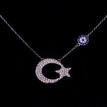 Nazar Boncuklu Ay Yıldız Kolye