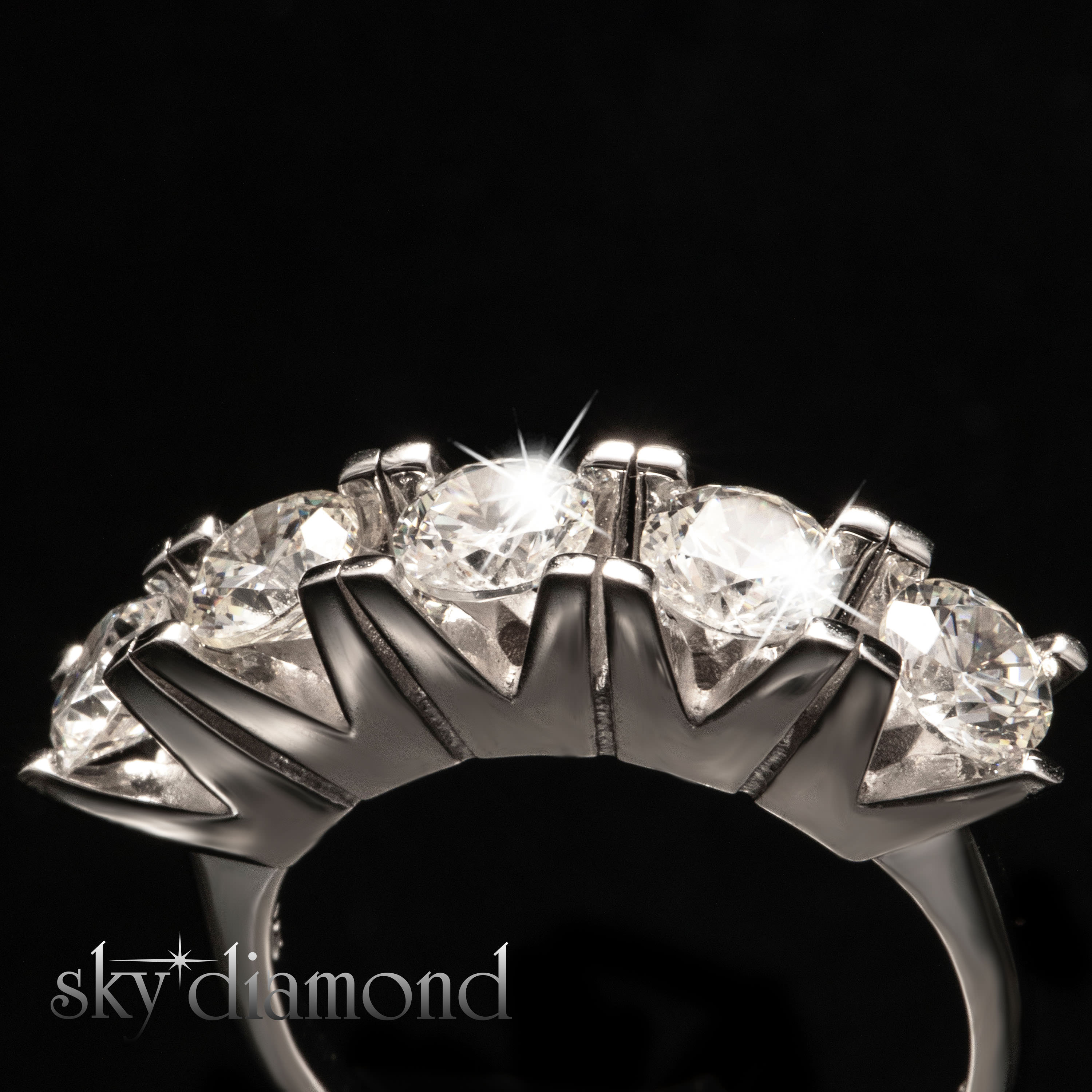 Skydiamond 5 taş prenses v model yüzük